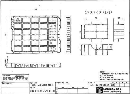 トレー外寸法 : 303×228×26.5H