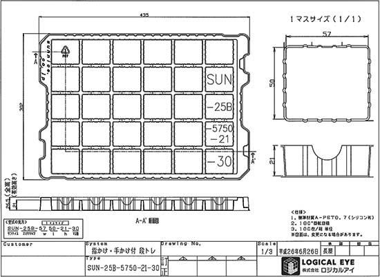 原反シートを引き延ばして成形するため、実際の成型品(トレー)の厚みは原反シートより薄くなります。