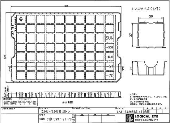 原反シートを引き延ばして成形するため、実際の成型品(トレー)の厚みは原反シートより薄くなります。